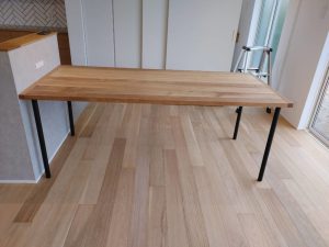 新居に合わせたサイズで製作した、 ダイニングテーブルです。 掃除がしやすいようにシンプルなデザインです。