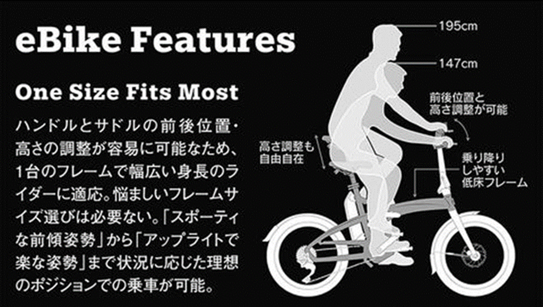 Tern独自の素早く簡単に折りたためる機構も採用しコンパクトな収納も可能になり、街中での効率良い最適な移動手段だけでなくサイクリングなどのスポーツ性と収納性など多様性を持ち合わせた1台です。